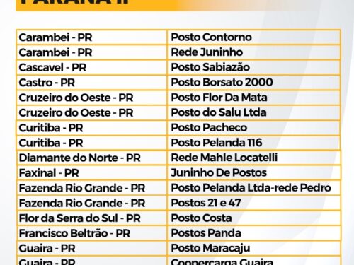 Encontre a listagem completa de todos os estados onde se encontram nossos postos parceiros para você, motorista, trocar a sua carta frete.